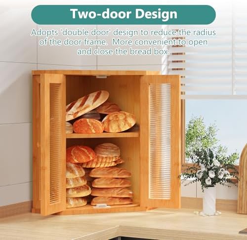 – **Spacious Design:** With ample space to store loaves, rolls, and baked goods, this breadbox is perfect for families and avid bakers. The corner design maximizes your kitchen space, making it ideal for countertops of all sizes.